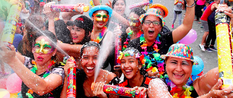 En Ecuador, el carnaval puede ser muy diverso, en la mayoría del país tiene una temática muy cultural y se celebra con agua, espuma de carnaval, talco, huevos y harina para pintarse la cara o cualquier tipo de pintura vegetal.