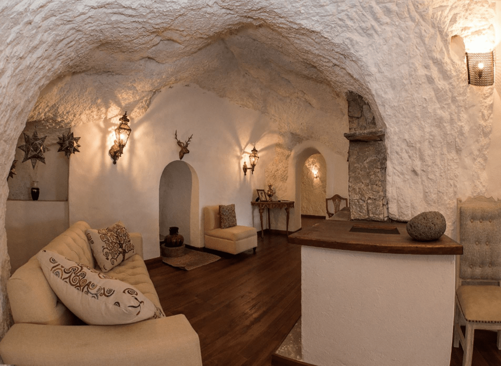 Ingresar a Hacienda Las Cuevas Terra Lodge es como viajar a un cuento de fantasías donde los hombres no viven en casas tradicionales, sino, en casitas acogedoras bajo tierra como la de los hobbits de la trilogía de El Señor de Los Anillos, del muy reocnocido escritor J.R.R. Tolkien. Y es que la hacienda Las Cuevas es un hotel que se encuentra en el interior de una cueva, cavada como casa de hacienda hace aproximadamente 45 años por el ingeniero e inventor Alvaro Bustamante. La excavación de la cueva fue realizada a mano, con pico y pala, por lo que se tardó alrededor de 20 años en ser terminada.