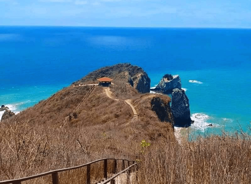 Todo enamora, el paisaje relaja y llena de energía a los turistas. Andrés Ocampo llegó desde Guayaquil. Por momentos se detiene en una de los miradores de los 830 metros del camino que se debe transitar para llegar a la cima. Su mirada se pierde en el horizonte, en la inmensidad del mar Pacífico que abraza a la costa de Manta y a la isla de La Plata del cantón Montecristi.