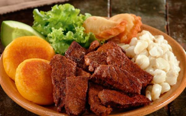 La carne colorada es típica de las provincias de Carchi e Imbabura en el norte del Ecuador. La carne colorada es un plato de carne de res (o de cerdo) marinada en un adobo de achiote, ajo, cebolla, comino, orégano y cerveza que forma parte de la identidad gastronómica de la sierra norte del Ecuador.