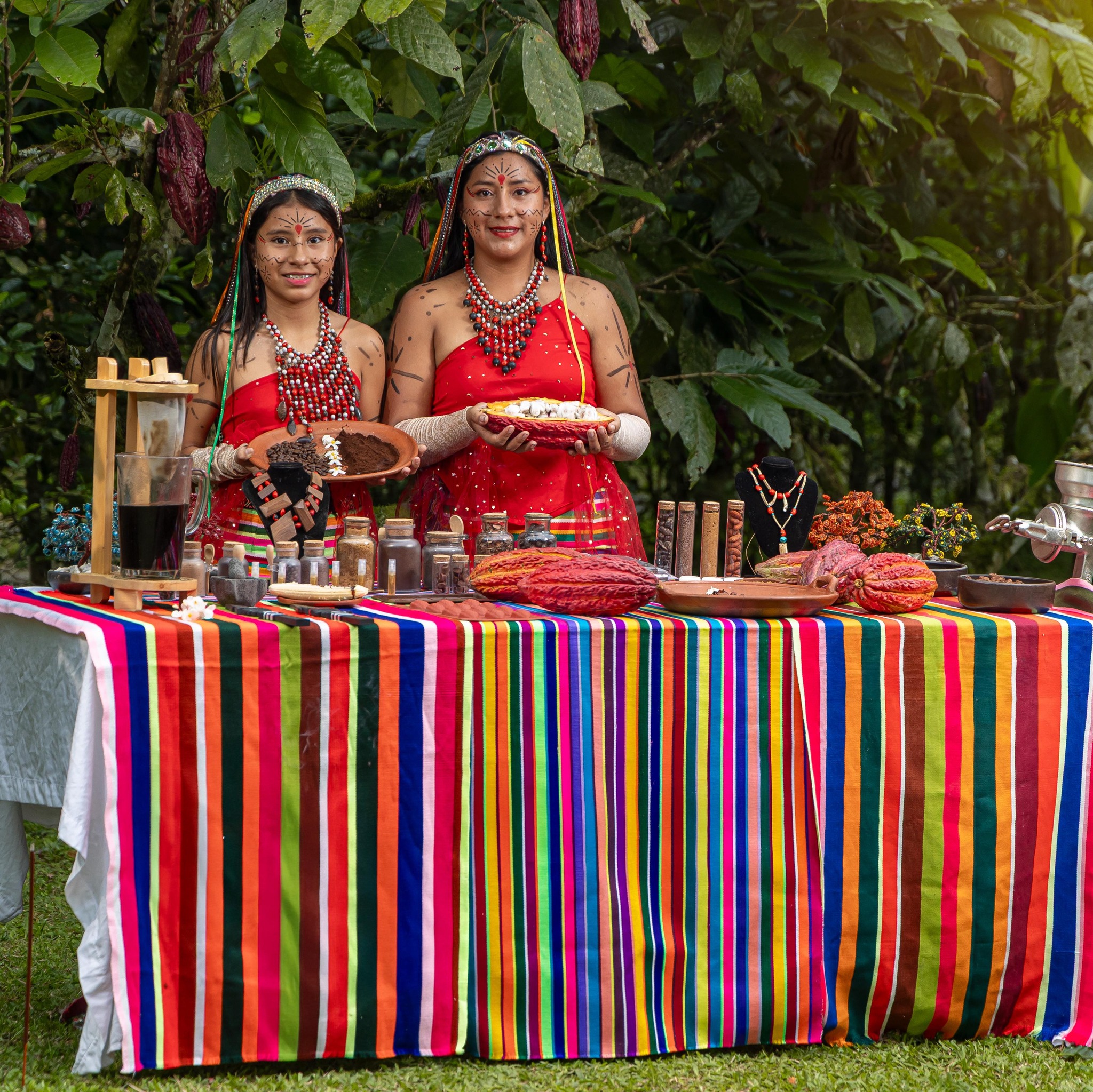 The afternoon offers a deep cultural journey with a visit to an authentic Tsachila Indigenous Community (the «True People»). Immerse yourself in their ancestral worldview, where knowledge of nature is sacred. Your hosts will guide you through their gardens to learn about the use and properties of local plants, including the iconic Achiote used to dye their hair red, a tradition that gives them the nickname «Colorados.»